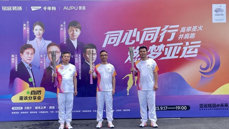 9月17日,杭州第19届亚运会火炬手:铭品装饰董事长张一良先生、千年舟集团董事长陆铜华先生、奥普家居集成事业部总经理汪纪纯先生、中国美术学院副教授,亚运会火炬“薪火”主创团队设计师——谷丛老师,做客浙江广电,参加“同心同行 燃梦亚运”直播分享会,以亚运会火炬“薪火”为契机,从火炬手和设计师两种角色,不同视角,分享他们心中对火炬和亚运的精神理解与实际感触,宣扬亚运精神。