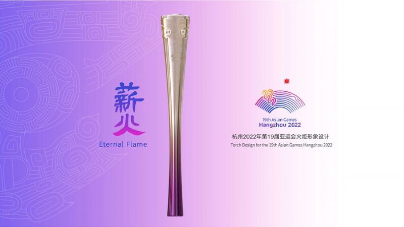“在火炬的造型和用材上,创作团队不断实验和创新,不仅融入了良渚文化和中华民族精神,还在材质、安全、色彩、造型上都有很大突破。”火炬上的火焰不仅是明火,同时也可以防八级大风,满满高科技;火炬上方下圆,顶部出火口的形状,呈十字交叉状;炬冠呈方形,采用了良渚文化中玉琮的造型;炬身以良渚螺旋纹为演化;炬基以八条水脉为文明之脉,代表浙江八大水系。同时,火炬通体覆以双色,顶部使用丹桂金,下端过渡为虹韵紫。