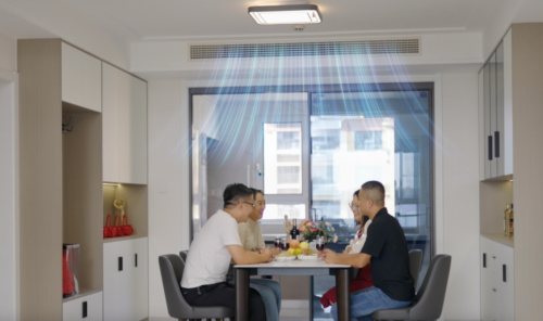 “日立中央空调也是我用心经营空间和生活的一部分,比如高温天气,安装新风系统后,既能享受室内空调的凉爽,又能同步呼吸到新鲜空气,并且下厨也不闷热;同时搭载3d出风口,出风柔和不直吹人,对老人小孩简直不要太友好了;还有大家最关心的噪音问题,日立采用多重降噪技术,营造20分贝高品质静音环境”。赵国霞女士赞叹道。