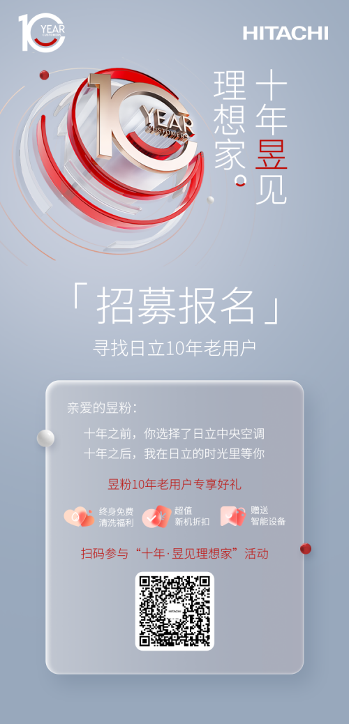 目前,日立中央空调“十年·昱见理想家”活动用户招募仍在火热进行中,经审核认证通过的十年老用户,即可获得日立中央空调官方服务团队免费上门清洗服务,更有免费智能设备IEZ Ⅰ升级等福利相赠;参与十年用户故事拍摄,分享自己与日立中央空调的点点滴滴,还可获得永久免费清洗、五折换新机等更多惊喜服务权益。