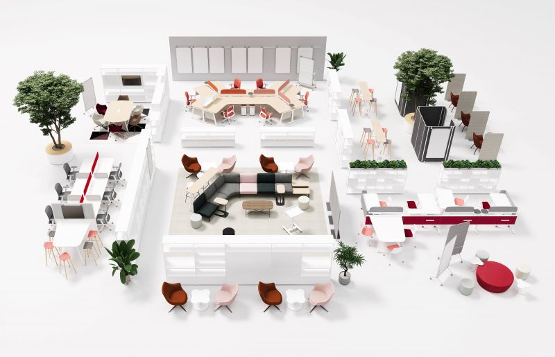 例如需要临时讨论时,Swift Board可移动白板实现独立工作与团队协作之间无缝切换;Swift Frame则是一款模块化的架系统,既可收纳,也可巧妙划分空间;搭配优雅轻巧的Para洽谈椅、Puffy沙发,帮助员工找回惬意,更轻松自在的交流协作。