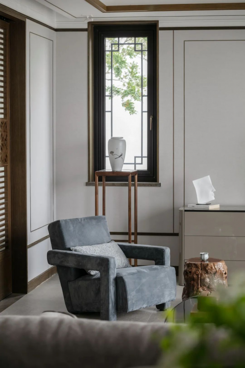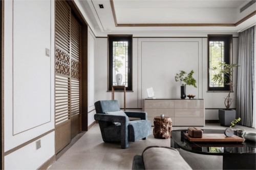设计不仅是空间元素的任意组合,更是细节之处的推敲,正如一层的会客室虽然充斥着现代元素,但因为东方之韵的流动,你会深受东方艺术的熏陶,朝着端景台望去,便有一种“山色空蒙雨亦奇”的江南意境。