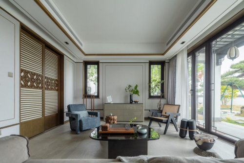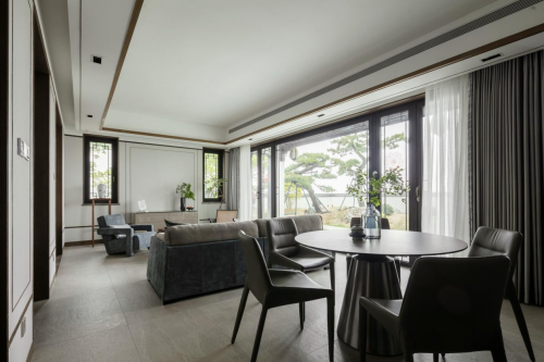 该别墅坐落于青岛藏马山旅游度假区内,是一座中式院落的别墅群,对于属马的男屋主来说,他钟情于中国园林,于是把此套别墅作为解压放松的度假休闲之地,请来设计师韩木为其设计,整个别墅设计之后变为了一座“隐居”之地,正所谓“东方雅趣,诗意之魂”。
