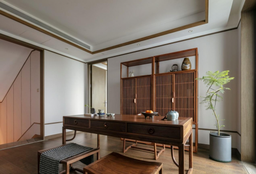 青岛的海风温柔,家也娴雅,正如手捧一杯茶,平心静气就是最佳的状态;在茶室的设计上,折射出“慢”的生活态度,对设计师韩木来说,设计就是最大程度地还原日常生活,“围炉而坐,茶香诗意”传递给屋主未来生活最大的热情。