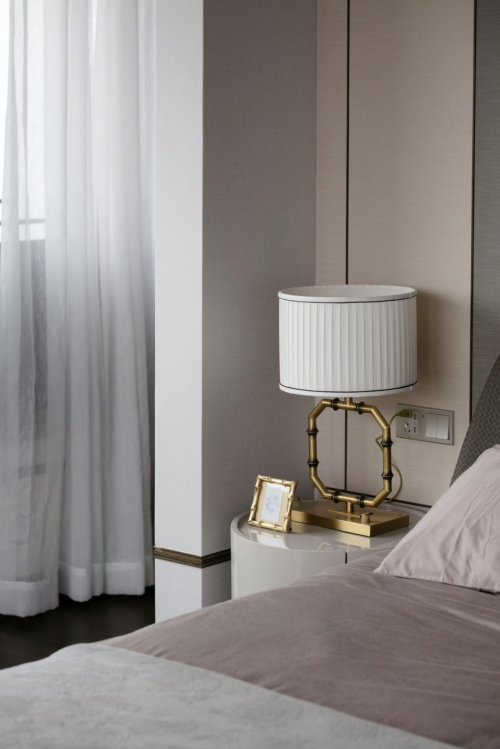 设计师打破了原有的结构关系,将每个卧室空间规划出一个自然之境,在日常的每一天生活皆有呼吸感,壁布、实木、皮革、金属、陶瓷等细腻而纯粹的材质使用,消弭了硬质的界限,奠定了典雅的精神栖息之所。