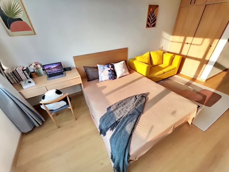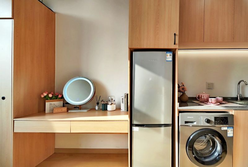 为了营造出舒适的居住体验,满足城市新青年的审美需求,社区室内精装设计采用了自然风主题,温馨而不失品质。户内包含独立厨房、卫生间及大面积采光窗台,并配备了齐全的家具、家电等。即便是较小户型,为保留空间通畅开阔不做隔断,只用软装和家具划分了功能区。