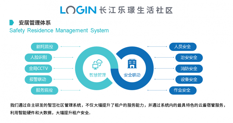 社区还引入了乐璟生活社区独立开发的“乐享住”智慧社区管理系统,链接了智慧硬件设施体系、智慧软件服务体系和智慧公寓生态体系,引进智能安防、智能家居,实现互联互通、人工智能与公寓服务相结合。