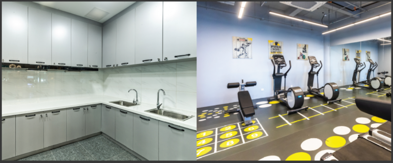 在公区配套和服务上,社区配有共享厨房、健身房等共享设施,还联合周边商圈,提供有偿的停车场服务,为有车一族的企业职工带来便利。