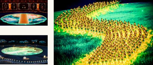 这是一场万众参与、数字互联的双向奔赴,通过地屏、立体透视网幕的配合、裸眼3D的视与虚拟影像的设计,将五千年良渚国潮古韵、烟波潮涌钱塘江、千载繁华大运河跃然舞台,宛如一座拱宸桥贯连古今,将古代中国、现代中国、未来中国,穿越时空与世界链接,全方位展现一个东方大国的独特魅力!