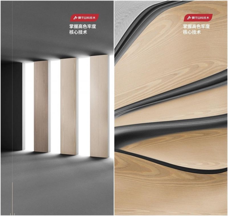 莫干山科技木结合现代先进科技,匠心造化木材之美,利用独家技艺,实现普通原材性能的再造与价值的提升。莫干山科技木有效解决了虫孔、节疤、色变等天然木材固有的自然缺陷,经电脑精心设计,纹理色泽丰富多彩,不仅可仿真天然木皮的纹理色泽,还可产生天然木材不具备的颜色及纹理。面对如今消费者对装修愈加多样化、个性化的需求,莫干山科技木聚焦设计创新,先后开发出两千多种花色款式驾驭各种家居风格,为高端定制家居开辟出更多的可能性。同时,可以根据客户不同的需求对花色、幅面尺寸、厚度等进行个性化定制,突破天然木皮的局限,为品牌构建核心竞争力。
