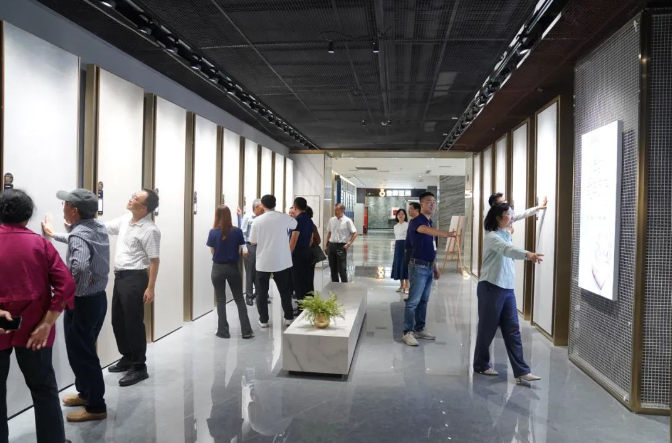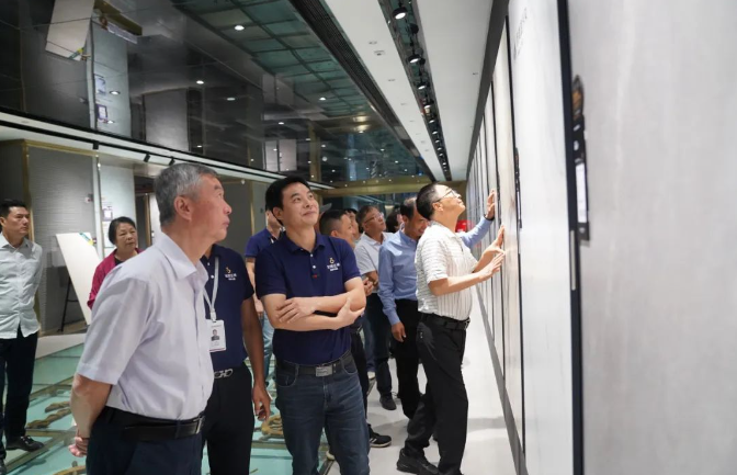 专家们首先来到金牌亚洲绿色智造生产基地,现场考察了项目产品生产情况,对项目产品金丝绒超抗污柔光砖生产线智能化程度给予高度评价,智能制造数字化生产线有利于打造和提高行业核心竞争力;专家们对项目产品有很高的认可度,认为项目产品的面世是行业技术创新又一次突破。