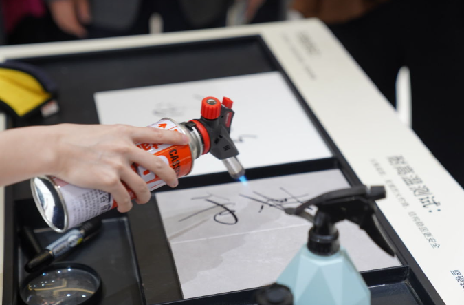 现场测试金丝绒超抗污柔光砖的抗污力