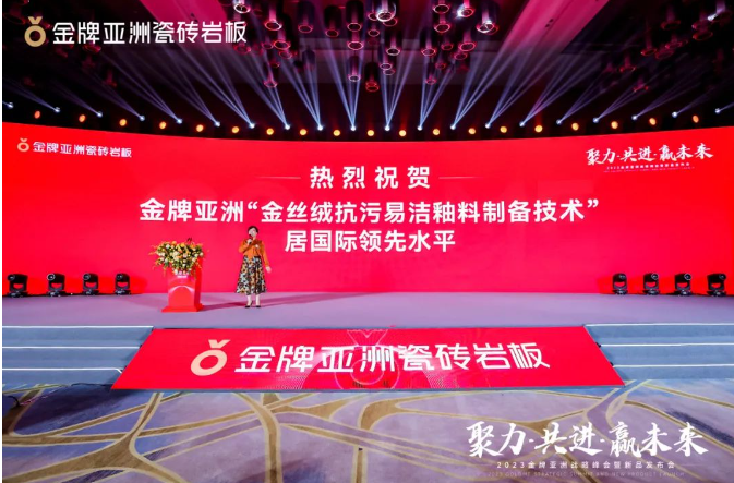 就在刚过去的10月19日,由中国建筑卫生陶瓷协会组织并主持的2023年科技鉴定会在金牌亚洲总部顺利召开,针对金牌亚洲具有金丝绒质感的超抗污易洁新型岩板/陶瓷砖项目进行科技成果鉴定,鉴定委员会一致认为该项目成果总体技术达到国际先进水平,其中抗污易洁釉料制备技术居国际领先水平。