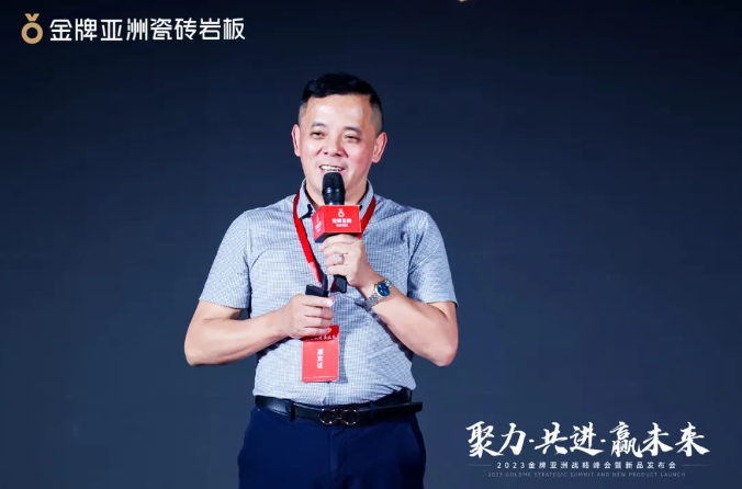多年的发展历程中,金牌亚洲以百余次的改革创新,引领瓷砖行业发展,是在逆势增长,也是在高速腾飞。金牌企业副总裁汤浩分享《聚力23·奋进24·腾飞25》金牌亚洲逆势增长蓝皮书,从产品、渠道、终端、品牌四大维度详述品牌应对危与机的多方举措,汤总表示,为用户创造价值是金牌坚定不移的方向,金牌亚洲将继续把握时代脉搏,抢占市场转型先机,为实现品牌持续高质量发展保驾护航。