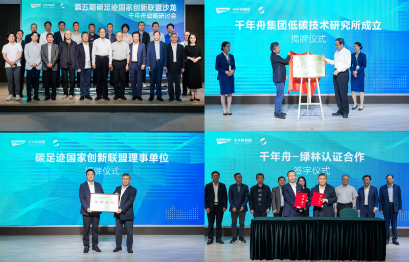 在今年10月份的以“碳达峰,碳中和”为主题的“第5期碳足迹国家创新联盟主题沙龙暨千年舟集团双碳战略研讨会”上,千年舟“低碳技术研究所”成立、碳足迹国家创新联盟理事单位授牌、绿林-千年舟合作协议签订,拉开了双碳战略规划全面推进的序幕。