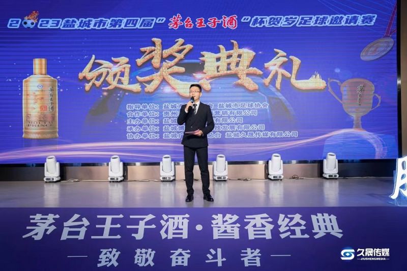 2023年11月19日晚,由盐城市体育总会和盐城市足球协会指导、贵州茅台酱香酒营销有限公司合作支持、盐城中晟体育有限公司主办、盐城博琳体育科技发展有限公司承办、盐城凯锐祥商贸有限公司、盐南文旅、盐城广播电视总台、盐城久晟传媒协办的盐城市第四届“茅台王子酒杯”贺岁足球邀请赛圆满落幕!