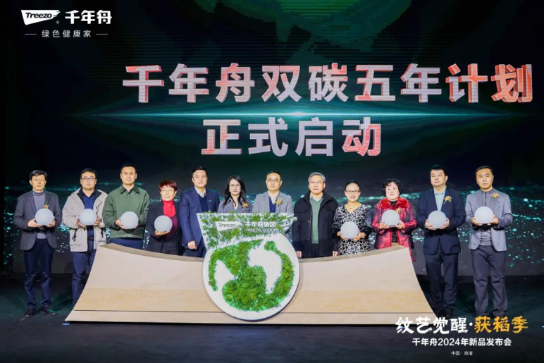 而作为一家有责任心、有担当的企业,在传承科技、风尚的同时,千年舟也始终以“绿色健康家”为导向,在探索自然、传承人文与品质家居和谐发展的路上奋楫扬帆,发布会上,千年舟与中国林产业协会共同发布双碳五年计划,向着“3060”双碳目标,建立碳管理体系,通过收集数据进而量化、监测、报告和减排温室气体排放,标志着千年舟双碳新纪年的开启。