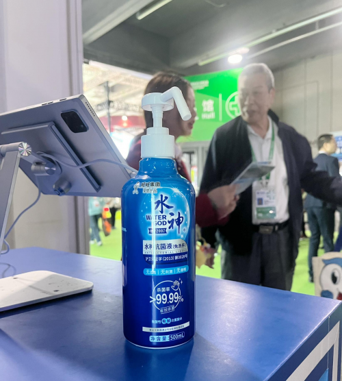所以,2022年和2023年进博会现场,就是优选的旺旺水神做清洁消毒。大批量的水神抗菌液(免洗手)500ml、水神自动感应洗手机套装、水神除菌液补充瓶500ml等明星产品,被分布在进博会的各主要通道、休息室、餐饮区等,方便全球展商及观众洗手/清洁/消毒。