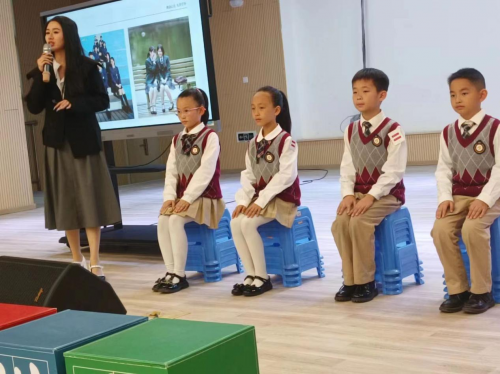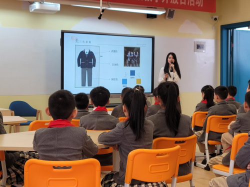 校服是学生的服装,它不仅是一套服饰,还是媒介,把一个学校的理念和精神价值织在其中,浸染文化,自然地彰显出学校的独特性和气质美。它既是流动的学校文化名片,也是学生隐性的学习资源。礼仪课堂上,美育老师分别从着装礼仪、仪态礼仪、校园礼仪三方面进行讲解,学生掌握了制式西装、衬衫、鞋袜、配饰的合理搭配,并从形态方面积极参与练习,明白了“不学礼,无以立”,仪态是表现个人涵养的一面镜子,也是构成一个人外在美好的主要因素,外在的礼仪是内心深处尊重的表达。