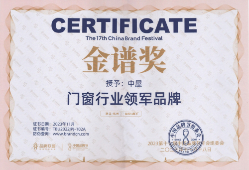另据相关资料显示,中屋门窗是中国《品牌强国》自主品牌示范单位,中国门窗制造业一级单位,中国科技创新 (门窗行业)突出贡献单位,中国科技型中小企业,门窗行业领军品牌。此次斩获 2023年中国品牌节金谱奖,并荣登门窗行业领军品牌,对于中屋门窗来说,是一次品质与实力的见证,也是新的起点。