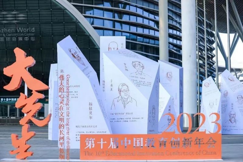 “伟大的心灵在文明长河里低颂”,致敬负着人的形象上升的教师。在登录厅门口的“大先生展”,梅贻琦、陶行知、李吉林……为一路前行的教育人“提灯”。主会场以群岛、海洋、生态作为设计元素,采用小舟形排位方式,呈现贝壳广场式整体布局,仿佛描绘出一幅生动的海岛画卷。