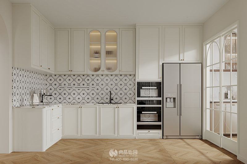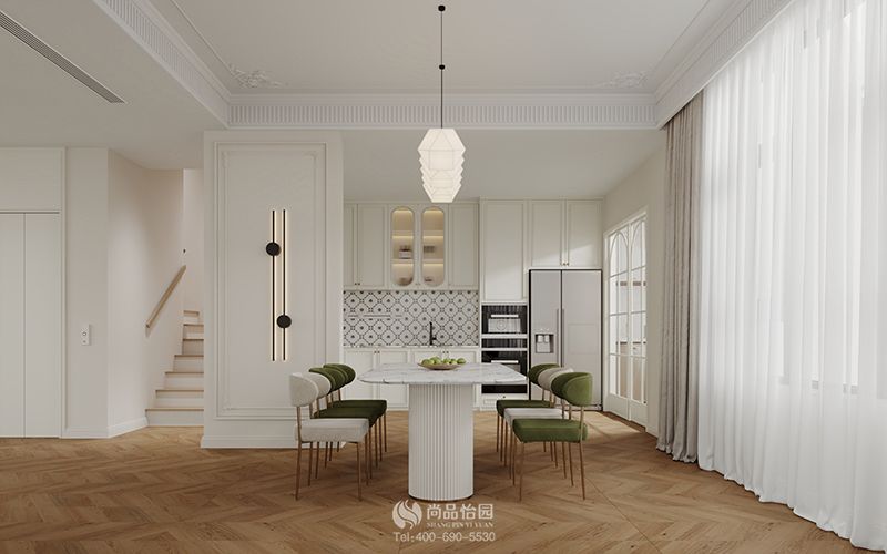 前言:本案例位于剑桥郡一期,是一栋有着440平方米的大户型别墅。设计师在与业主的沟通中了解到,该别墅是由是业主夫妻二人和小朋友居住,未来也会住家保姆,且双方父母偶尔过来。喜欢法式,轻奢,奶油感觉。同时了解到女业主喜欢奶油白色,绿色,金色等耐看色,不喜欢饱和度太高的颜色。因此设计师选用了轻奢法式奶油风装饰空间,借用轻柔的色彩与简约的设计打造温馨而又高级的家居环境。