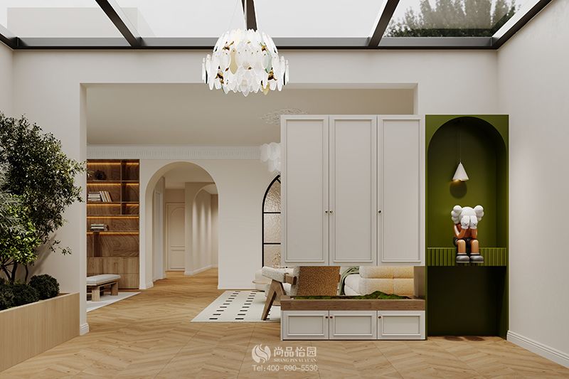门厅区域的设计以拱形门为主,强调整体柔和之美。