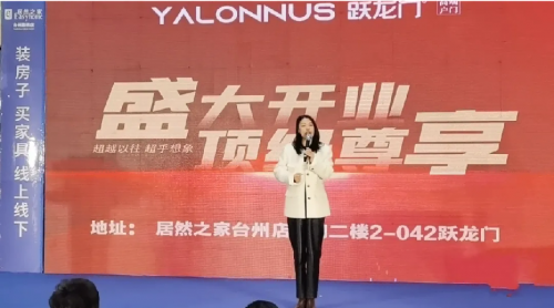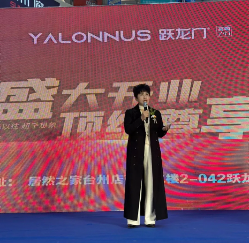 跃龙门运营总监颜文双致辞。她表示,当下是消费主权的时代、是个性化产品定制的时代,相对于传统的过去,门,除了是我们家庭的一道安全防线以外,门还代表着身份、地位、品质及幸福,所以消费者对门的文化和需求越来越高。