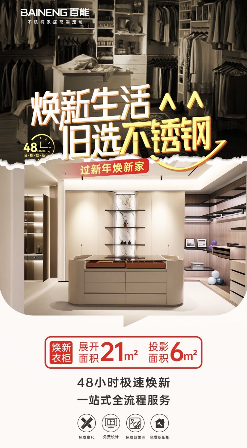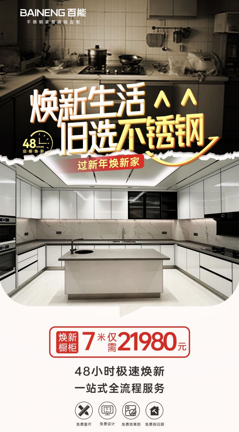 2023年11月25日,百能家居发起旧厨焕新活动,该活动是不锈钢家居行业首个以旧厨改造为主题的活动,旨在为客户解决旧厨房常见的痛点问题,为人们带来高品质的家居生活。