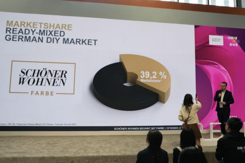 作为德国国民涂料品牌,SCHÖNER WOHNEN-Farbe在德国备受当地居民青睐。不仅获得德国国家设计奖、德国品牌奖、德国产品冠军榜第一名等重磅奖项,Frederik Strotmann还给大家分享了SCHÖNER WOHNEN-Farbe预调色系列2023年上半年德国市场的市场份额:39.2%。