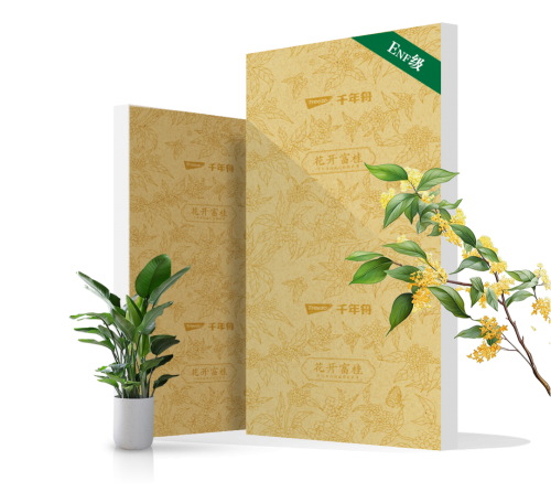 千年舟纸面石膏板国韵系列·花开富桂,以高纯度石膏、纯木浆高强护面纸和增强纤维为主要原材料,采用独创胶凝硬板技术,板芯内添加高级耐火添加剂、耐火纤维和进口高级防水材料,产品在满足耐火性能要求的同时,提供了优秀的耐水和防潮性能,还具备高握钉、高强度、抗冲击、抗变形、防开裂、密度高等优点,是高档装修的理想板材。