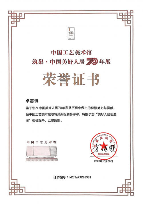 2023年10月30日,中国工艺美术馆 中国非物质文化遗产馆、广州美术学院建筑艺术设计学院、筑巢奖组委会联合主办的“筑巢·中国美好人居70年展”暨“第十一届筑巢奖颁奖盛典”在京拉开帷幕。