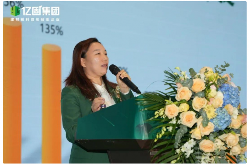 接着,亿固集团总经理任改霞围绕“绿海之道”这一主题展开演讲,探讨了在建材辅料行业中如何践行绿色发展理念,推动企业实现可持续发展。用任总的一句话来总结就是:“深耕辅料市场15年,只为做好一件事”。据任总介绍,亿固集团年度增长率达86.52%,2018年至今金钢瓷砖胶销售达1.5亿包,在众多与亿固合作的客户中,千万级客户已突破近10家,百万级客户年度增长率超200%以上,100%增长的经销商客户有26家,海外出口量达历史新高,她认为,“六必四专”市场服务是公司取得成功的关键因素。