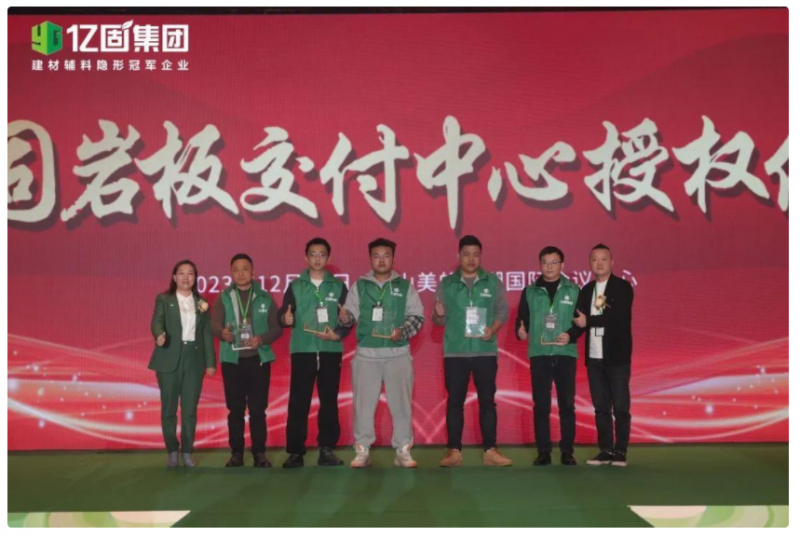 为打通大板岩板落地交付最后一毫米,全国岩板交付中心在大家的共同见证下正式成立,全国岩板交付中心的成立,不仅体现了亿固公司的技术实力和服务水平,更彰显了亿固的社会责任和担当。成立仪式现场,亿固正式授权5名战略合作伙伴在当地成立亿固岩板交付中心,为全国岩板大板商家、建材辅料商家提供落地交付服务。