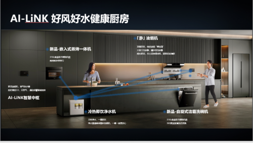 而“风水”厨房中最新亮相的“自旋式”洁霸洗碗机、“彩膜屏”双蒸汽蒸烤箱,更是为中国家庭量身定制:碗能转着洗,实现了360度无死角清洗;双蒸汽系统,蒸得快、蒸得透。不仅如此,这两款产品通过AI-LiNK与橱下净水机联动,实现大流量净水直通,确保洗后餐具更健康安全,蒸的食物更健康美味,同时又有效地避免了水垢残留,全方位满足用户健康需求。