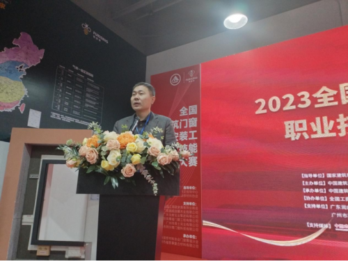 中国建筑装饰装修材料协会门窗幕墙分会黄得银主任介绍2023全国建筑门窗安装工职业技能大赛的大赛实施方案、评分细则。同时,他还强调了评分过程的严谨性和透明度,确保每位参赛者都能得到公正的评价。