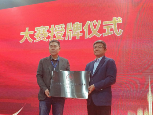 随后,丁辉秘书长为广州市福里事复合材料有限公司颁发全国建筑门窗安装工职业技能大赛广东赛区牌匾。