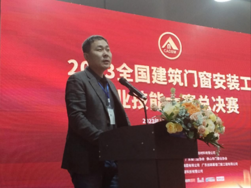 紧接着,中国建筑装饰装修材料协会纪检专员、网信办主任兼门窗幕墙分会秘书长丁辉,宣读关于同意广州市福里事复合材料有限公司承办广东分赛区的批复。由衷感谢广州市福里事复合材料有限公司为这次大赛提供全方位的支持和保障,确保每位选手都能发挥出最佳水平,共同为提升建筑门窗安装行业的整体水平而努力!他表示,门窗作为建筑和装修中不可或缺的一部分,其重要性不言而喻。希望通过这样的比赛,能够更进一步地推动门窗行业企业的高质量飞速发展!