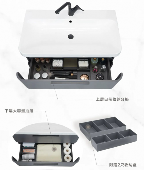 相比而言,卫生间里的浴室柜,它更能赋予更多的个性,可以充分地体现你的家装风格。同时,作为卫生间的仅有的收纳空间,它的收纳能力也应该被重点考量。如果你也喜欢奶呼呼的奶油风,喜欢那一份治愈和温馨,具有柔美曲线的摩恩珂珑浴室柜是一个不错的选择,柜体均是圆角设计,更有最流行的奶油色系可选择。双层自由收纳空间,上层自带收纳分格,小物件都可以妥妥安置,下层大容量抽屉,大号日用品也能完美归位。这样一款兼具设计和实力的浴室柜,绝对可以一下子击中你的少女心。