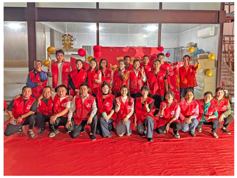 随着开场音乐的响起,参会人员身着鑫亿达红马甲、佩戴红围巾,昂首阔步走红地毯入场并有序入座。