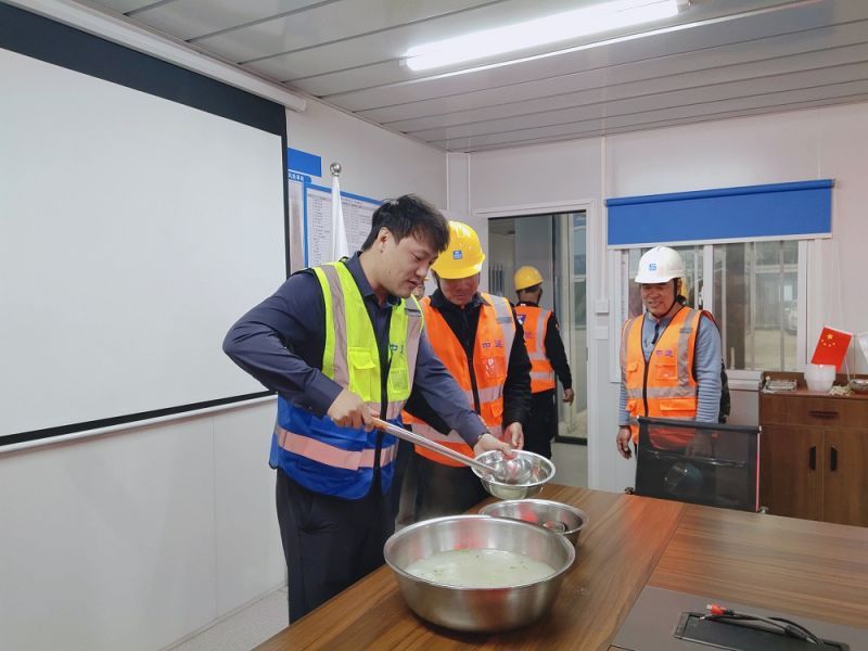 活动现场呈现出一片欢乐祥和的美好氛围,工友们一边聊着家常一边品尝着热腾腾的汤圆,在甜蜜的口感里浓郁了关于团圆的回忆,“汤圆特别甜。今年早早就来工地了,没能和家里人一起过元宵,但是和工友们一起在工地过节,也像在家里一样温暖、开心。”一位工友吃着汤圆满脸笑容地说道。当日,项目为50名工友准备了汤圆,并组织项目管理人员将煮好的汤圆盛好送到工人的手中。“希望项目优质履约,按期交付,扎根深圳与特区共成长。”项目负责人王海滨一边给工友盛汤圆一边说道。