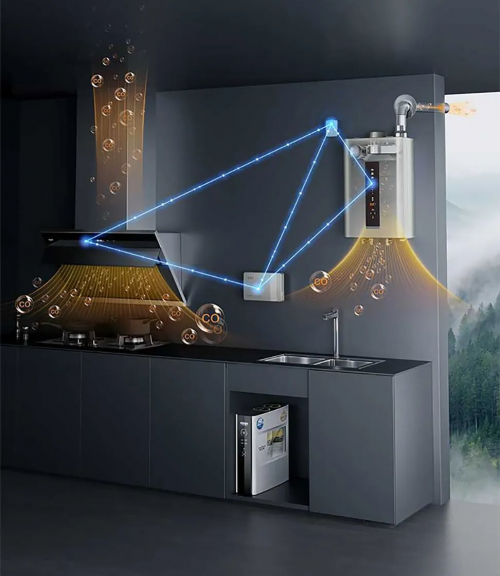 不仅如此,A.O.史密斯还于日前将「瀞」油烟机接入了其自主研发“以人为中心”的全联全控智能物联系统——AI-LiNK。该系统让用户家中原本孤岛式的智能家电产品真正“链接”了起来。通过AI-LiNK,油烟机、燃气热水器、双气体报警器可以实现智能联动,实时地监测厨房内的有害气体。一旦监测到厨房内一氧化碳、甲烷等浓度超标时,系统可以迅速启动声光报警,并快速将有害气体排出室外,有效地避免了室内空气的污染,全天候地智能守护家人的安全。