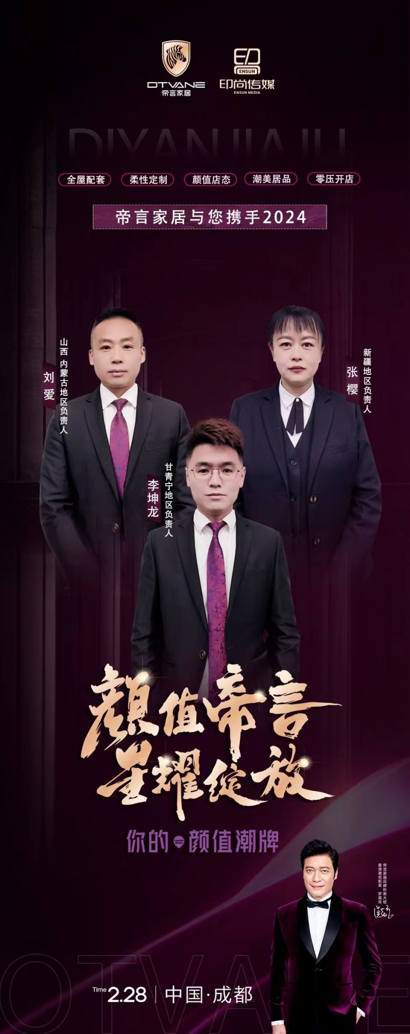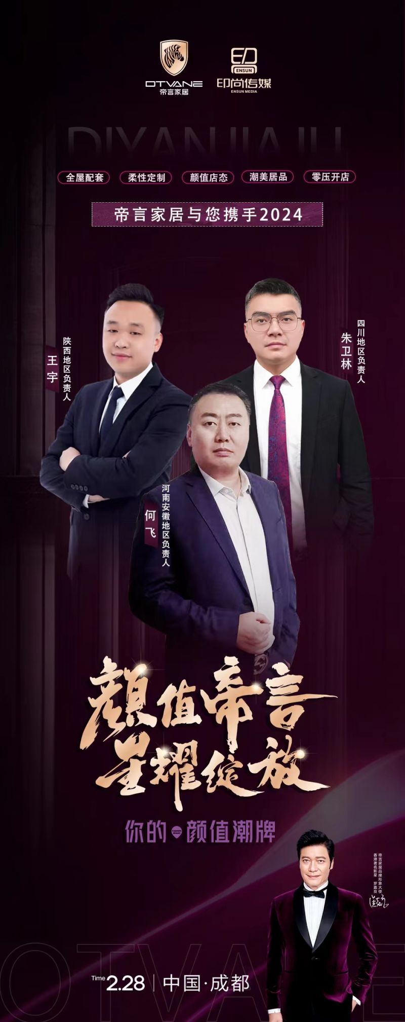回顾去年,帝言家居在四川成都成功举办了品牌及产品升级的启动仪式,并代表了企业多维度的全新起航!特邀香港著名三界视帝罗嘉良先生出席活动,并签约成为首席形象大使!意味着帝言家居迈向新高度,颜值帝言星耀绽放始于行动!