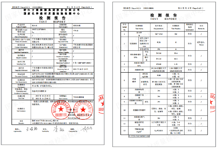 千年舟悦木板生产过程采用环保胶水,零甲醛添加,板材环保等级可达到ENF级。板材表面采用千年舟锌效抗菌2.0三胺纸,成品板材抗菌、抗病毒、防霉,实现双抗一防。同时杉木原材自带纯天然清香,让生活在呼吸间倍感清新,让家居空间更加健康环保。