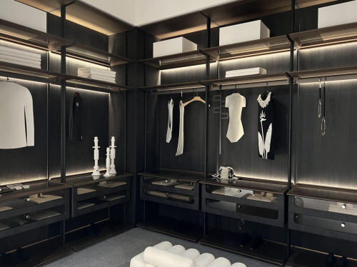 纵观本次红利整木·悦境系列空间打造,无论是色系上的低饱和度优雅质感,还是在材质细节上的轻奢风情,都诠释着红利整木对家装风格的趋势解读。由设计师精选木皮与金属漆的融合,结合型材和石材,打造出兼具美感与实用的家居艺术品;在创新方面,红利更是注重细节,在门厅书柜的玻璃材质和独创的圆弧前口造型等细节上,都充分体现了品牌对工艺的精湛追求。