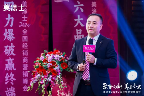 因势而谋,应势而变,会上,杨总围绕行业前景、营销模式、品牌机会、竞争格局等方面,深度解析了当前行业的现状与机遇,并针对在当前市场大环境下,美涂士如何与经销商共赢市场,现场发布了美涂士2024年零售6235战略规划。