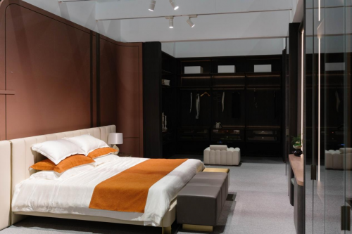 据悉,本次红利整木定制展馆总面积超过260㎡,通过完整的家居空间,展示了包括客厅、餐厅、卧室、衣帽间等多个独立部分,共同演绎了全新“悦境”系列的轻奢风情。悦境汲取当前主流受众的家居需求及审美风情,以轻奢风为核心,完美结合家居实用主义与艺术调性,呈现红利整木在家居定制领域的独特魅力和创新实力。在设计理念上,红利“悦境”系列以现代生活方式的深入洞察和对传统治木工艺的传承;由设计师精选原木木皮与水性漆相融合,结合玻璃材质与金属材质,打造出兼具美感与实用的家居艺术调性。在展会现场,红利展馆引发消费者现场热议,观展者比肩接踵,意向加盟商更是络绎不绝。
