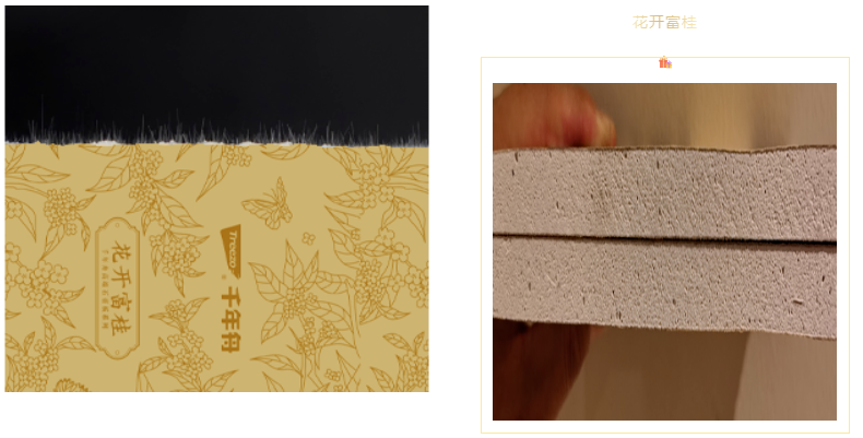 千年舟纸面石膏板国韵系列·花开富桂,传递着诗意和美好的含义,「花开」是生机勃发,「富桂」是繁荣富足,高雅风韵,力压群芳,同时兼具多项全能的硬实力,是一款结合文化风尚和产品设计的高品质高端石膏板。