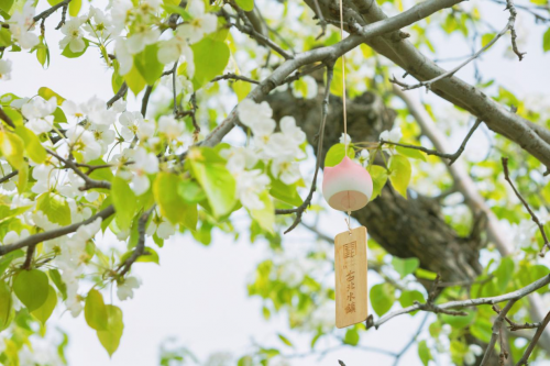 此外,铃动春色与斑斓风车也为春天增添了悦耳的声音,让游客们在微风轻语中感受春天的气息。除了这些互动体验,古北水镇还在多处设置了与春天主题相关的装饰和布景。木桥处的桥栏花卉、山顶教堂的“打翻的春天”“流动的风”以及摆渡车上的“开往春天,共赴美好”等,每一处都洋溢着春天的活力与生机,让游客们置身于青山绿水相映的画卷之中,尽情领略春天的魅力。