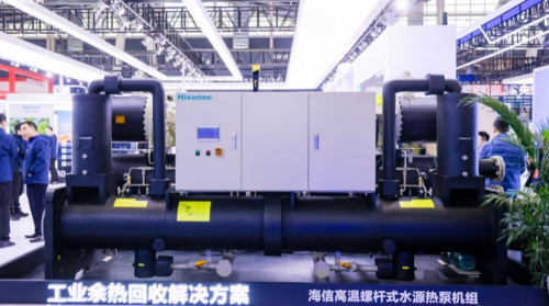 3月16日下午,海信中央空调展区以“热力泵发碳路未来”为主题,发布高温螺杆式水源热泵机组新品。